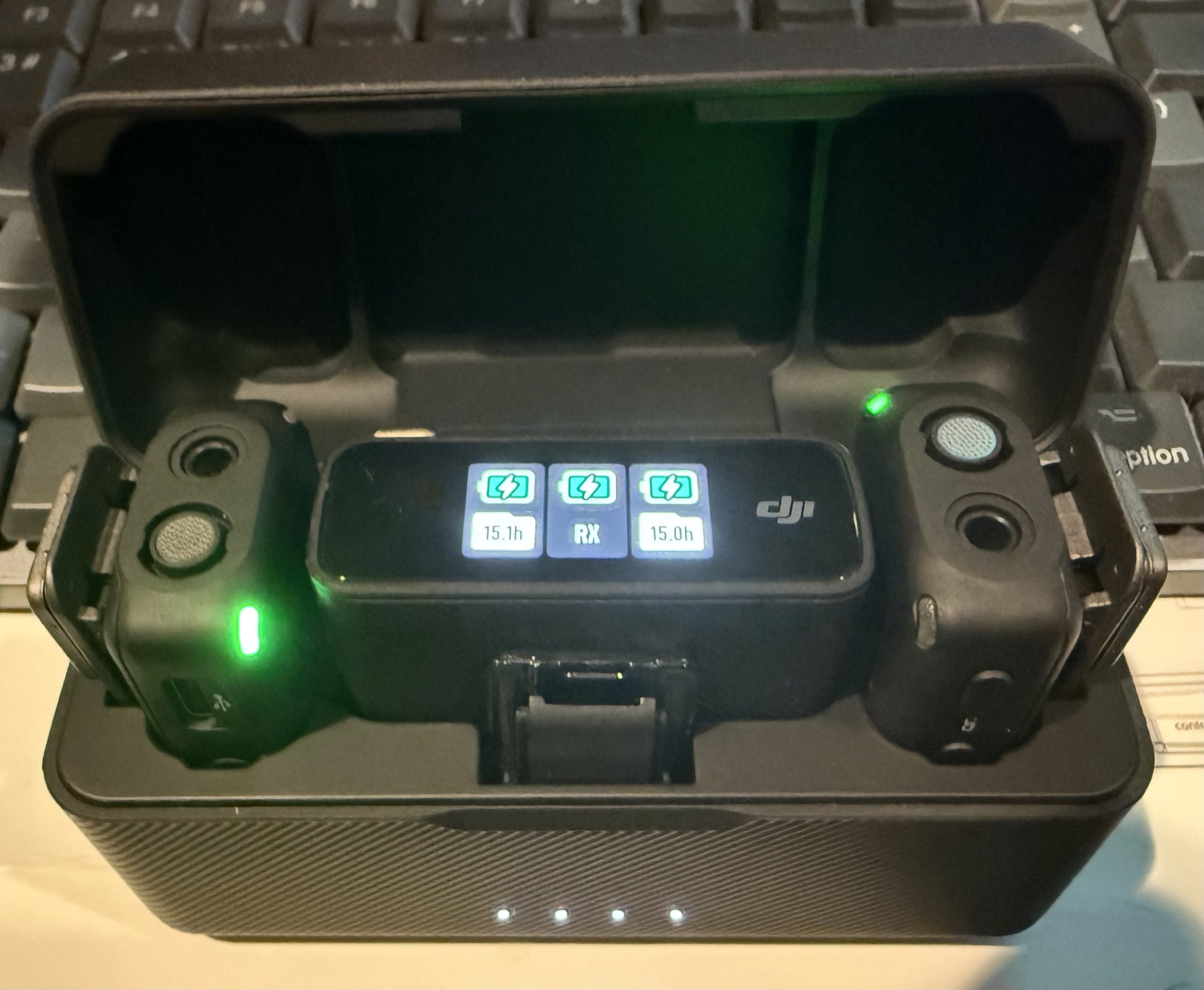 [00:01:54] All right, so here's the deal. I had to get some remote videos, in other words, out of my office. Videos done and I went looking. I hadn't done any out of the office for a while, and so I went looking for my very fancy, expensive Sennheiser microphones. And they're like seven. They were $700 when I got them years ago. I don't know how much they cost now, but I couldn't find them. But I remembered that in my drone operation I had a set from DJI. Now, DJI is a Chinese company that's been taking a lot of heat because, you know, they're trying to kick them out of the the world and I don't know, but anyway, the drone is great and this microphone system is great. So let me tell you about it. So it's the whole thing including two microphones is no bigger than a, I don't know, a pack of cigarettes, a thick pack of cigarettes. Right. And it's got a case that's called a battery case. So the receiver and the two clip on transmitters, while they do more than clip on are in this battery case. So you charge up the battery case and it charges up all the stuff inside. A couple times. All right. If you're out on the road and you're getting low on battery on one of the transmitters, you put it back in the case for a little while.